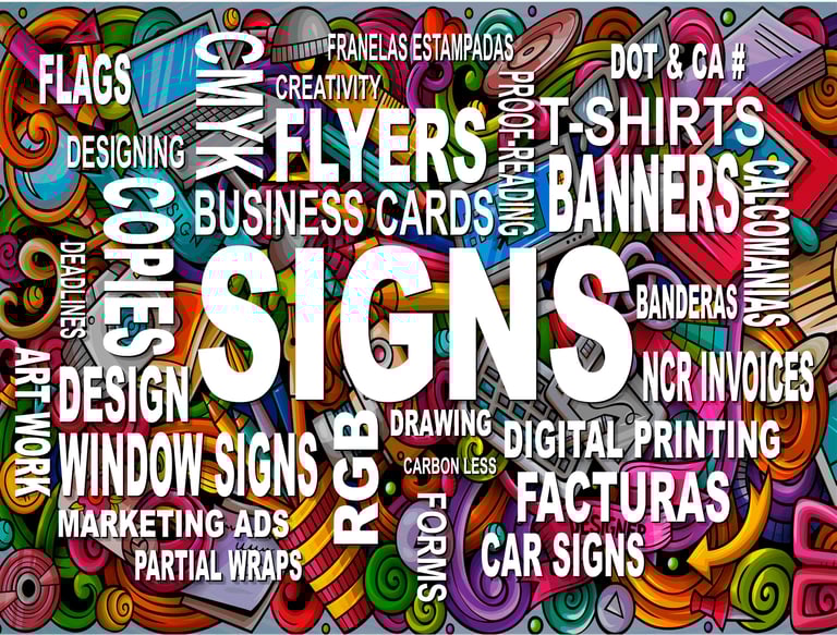 We specialize in grand format banners, vinyl decals, business cards, flyers, and custom heat press designs to elevate your brand.